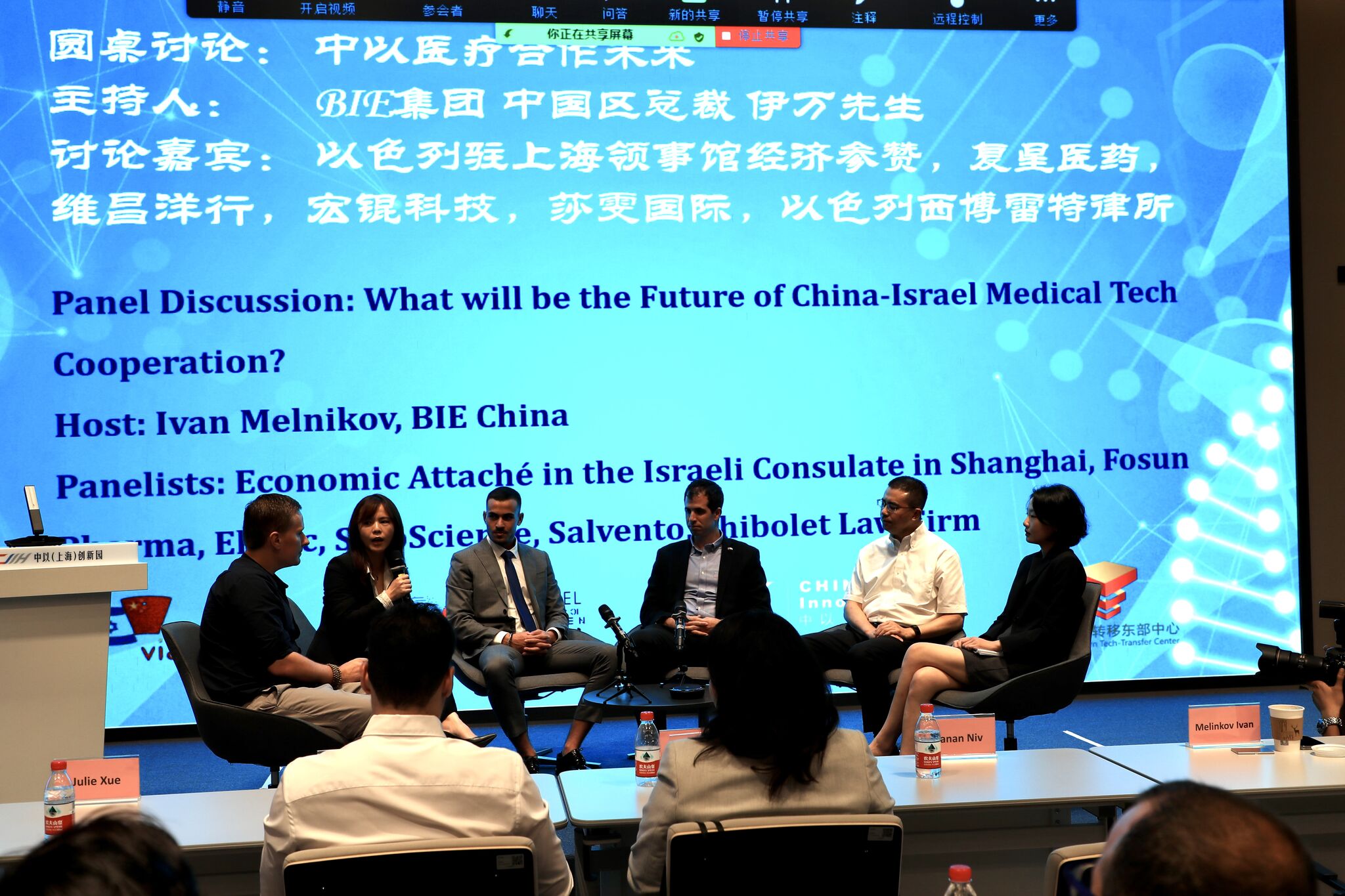 Representatives from the Israeli government, Chinese medical field, and the public sector in China came to the event that was held at the China Israel Innovation Hub (CIIH). The event comprised of a panel discussion hosted by BIE’s GM Mr. Ivan Melnikov, including the Economic Consul of Consulate General of Israel in Shanghai Mr. Niv Hanan; the Vice president and GM, Division of Precision Healthcare at Fuson Pharma Mr. William Wang; the GM of Ekpac Medical Ms. Julie Xue; the CEO of Sinosciences LTD Mr. Segev Halfon; and the Associate lawyer at Shibolet & Co. Ms. Jiaxin Zhao. The panelists discussed opportunities for the future of Israeli med-tech in China.